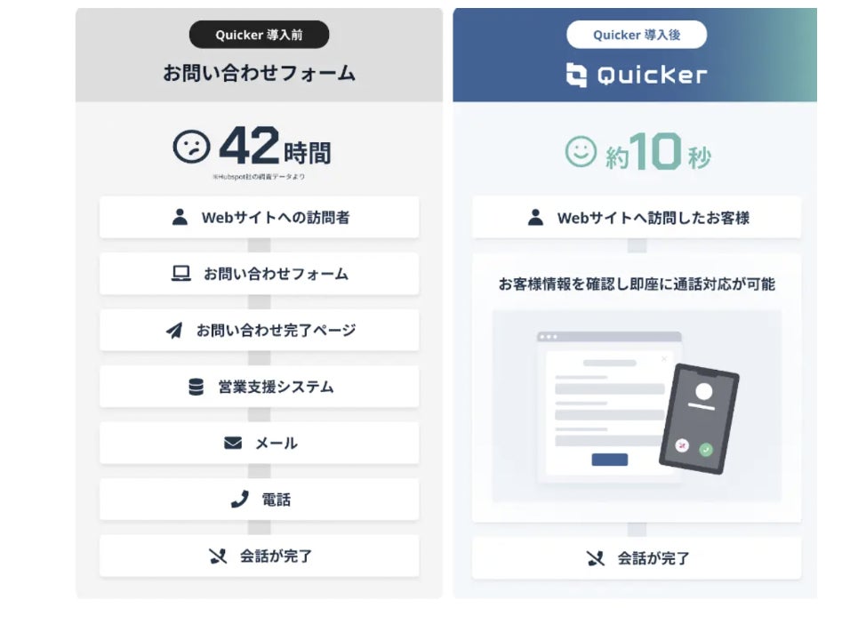 しかし「Quicker」であれば、双方の無駄を排除し機会損失をゼロにし、効率化を図ることが可能となります。