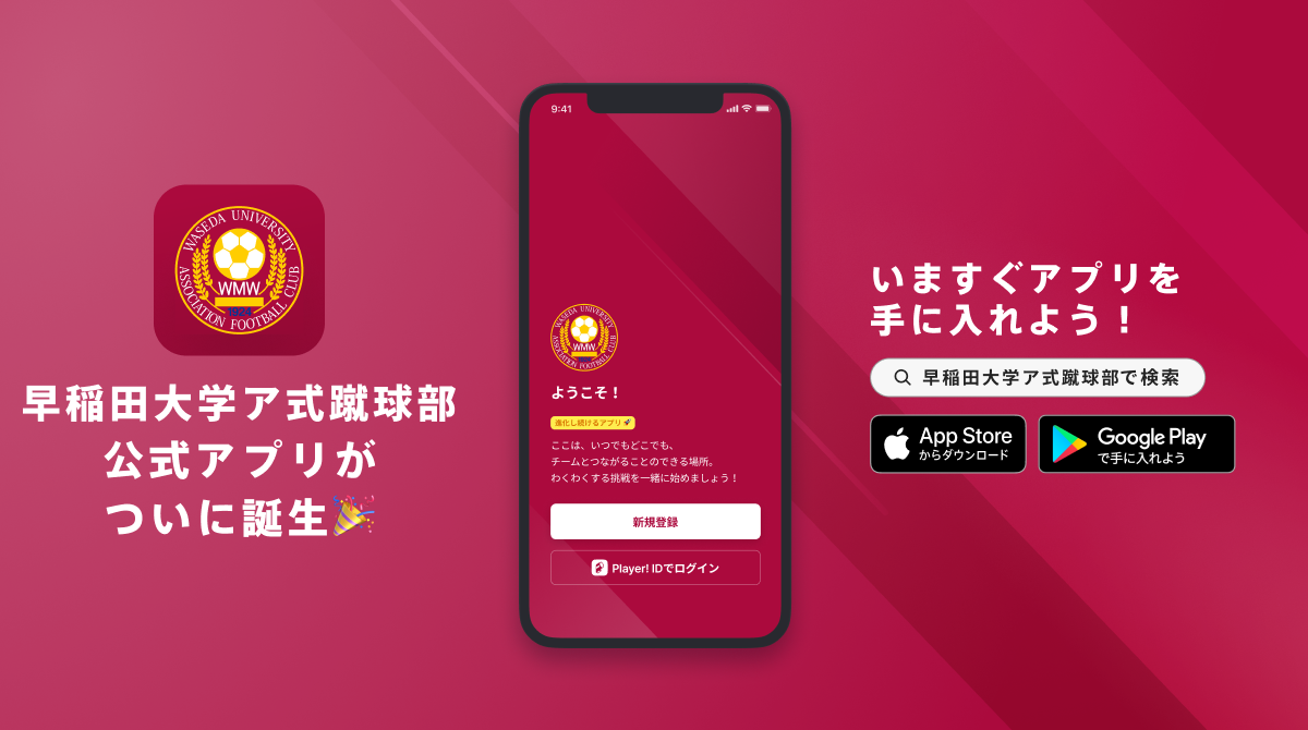 早稲田大学ア式蹴球部が来シーズンである2024年に100周年を迎えるという中で様々な取り組みを行おうと計画しております。その中でア式を応援してくれる人とチームを繋げるという目的を達成するため、 試合速報で以前より使用させていただいていたPlayer!さんと公式アプリを制作することでより多くの方とア式を創り上げていこうという思いから今回の導入を決定致しました。