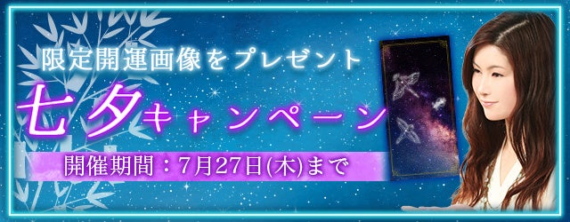 真木あかりの公式占いサイトでは、『七夕キャンペーン』を開催中です。期間中、対象の鑑定を占っていただいた方全員に、特製の開運画像をプレゼントいたします。