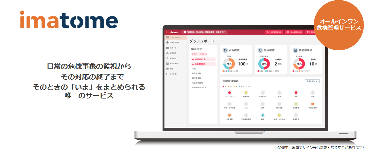 災害・危機発生時にお客様の従業員やスタッフなどの安否状況が確認できます。「imatome」