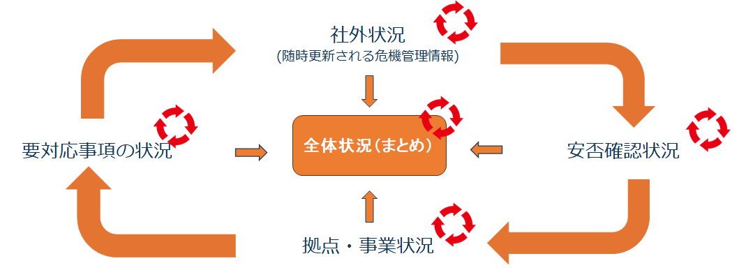 災害や危機に直面した際に、社内外の状況や事業環境への影響を迅速かつ正確に把握していくことは、その後の事業継続の対応判断において重要ですが、「時間の経過とともに変化する様々な情報を収集し続け」ながら、「それらの情報をとりまとめて自社の状況を把握」することの両立は、いつ起きていつ収束させられるかを予測できない災害・危機対応の特性上、大きな課題であり続けています。