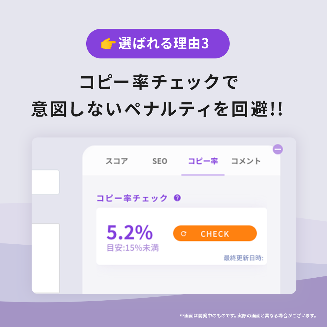 ・コピー率チェック機能を搭載し、著作権の問題やコピーコンテンツになるペナルティリスクを低減