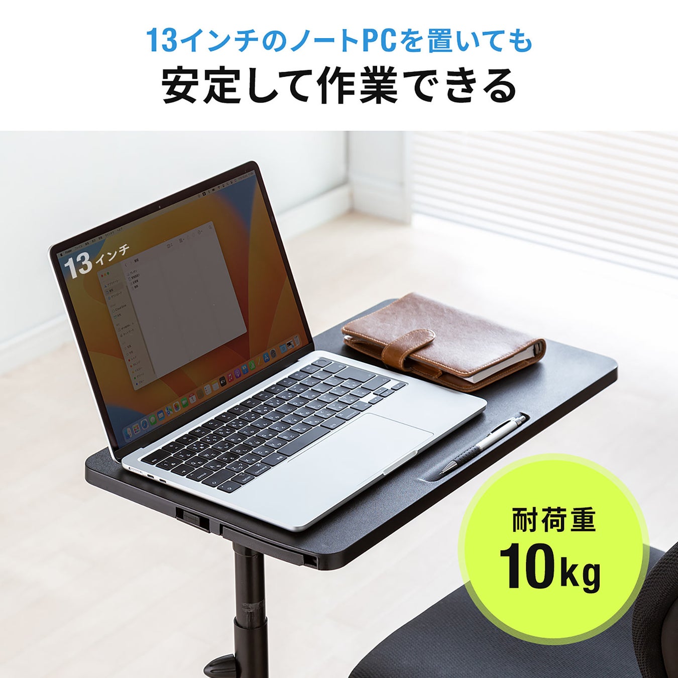 天板サイズは、A3対応サイズで資料やノートPCを置くことができます。天板耐荷重は10kgです。