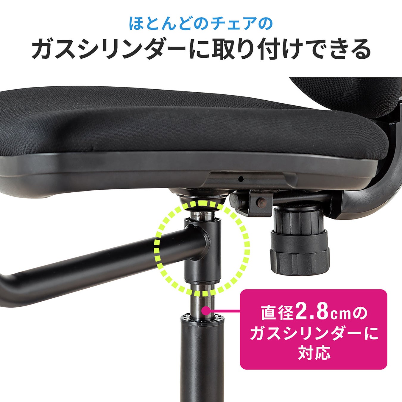 品番:150-SNCDESK1ここがポイント!・手持ちのオフィスチェアがメモ台付きチェアに変身!・チェアのガスシリンダーに装着する後付けデスク・A3サイズの天板に重さ10kgまでの物を乗せられる・使う人に合わせて5段階の高さ調整が可能・ペントレーとカップホルダー付き【ご注意】※ガスシリンダーに本製品を取り付けることで、...