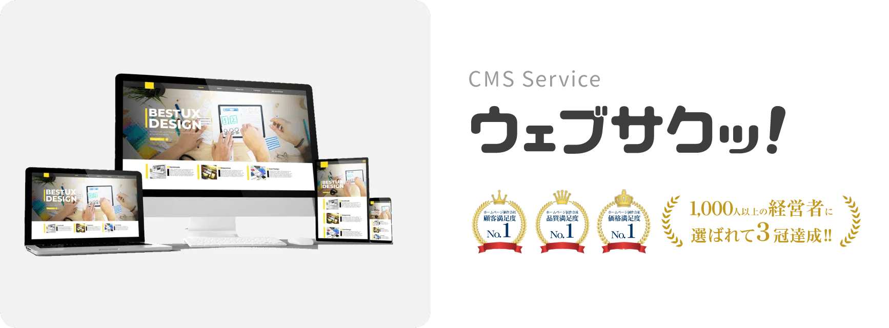「ウェブサクッ!」は、サイト制作とCMSの運用保守とサポートをパッケージにしたプロダクトで、高品質なWebサイトを開設し、誰でも簡単に全てのページを更新することが可能なサービスです。専任スタッフと打ち合せを行い、運用開始後の操作サポートからCMSとサーバーの運用保守管理までトータルサービスを特徴とします。また、「中小企業をWebサイトで元気にしていきたい!」との想いで価格を初期費用39,800円・月額4,800円(税別)とリーズナブルに抑え続けています。