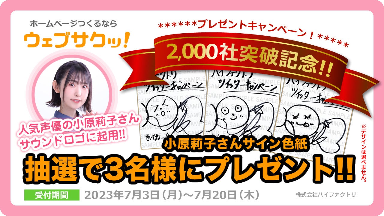 2023年7月3日(月)13時より開始となるTwitterキャンペーンでは、小原莉子さんのサイン色紙を抽選で3名様にプレゼントします。※デザインは選べません。