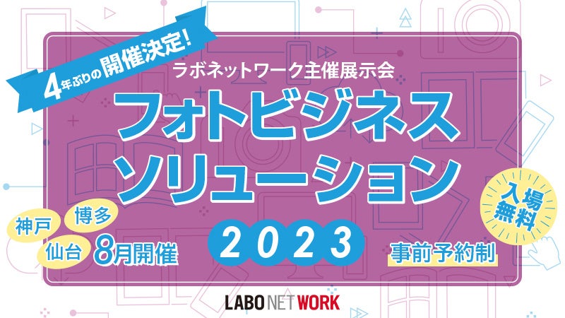 フォトビジネスに携わる事業者を対象にした弊社商品・サービスの展示会「フォトビジネスソリューション2023」を2023年8月3日(木)・10(木)・24(木)の3日間、開催いたします。