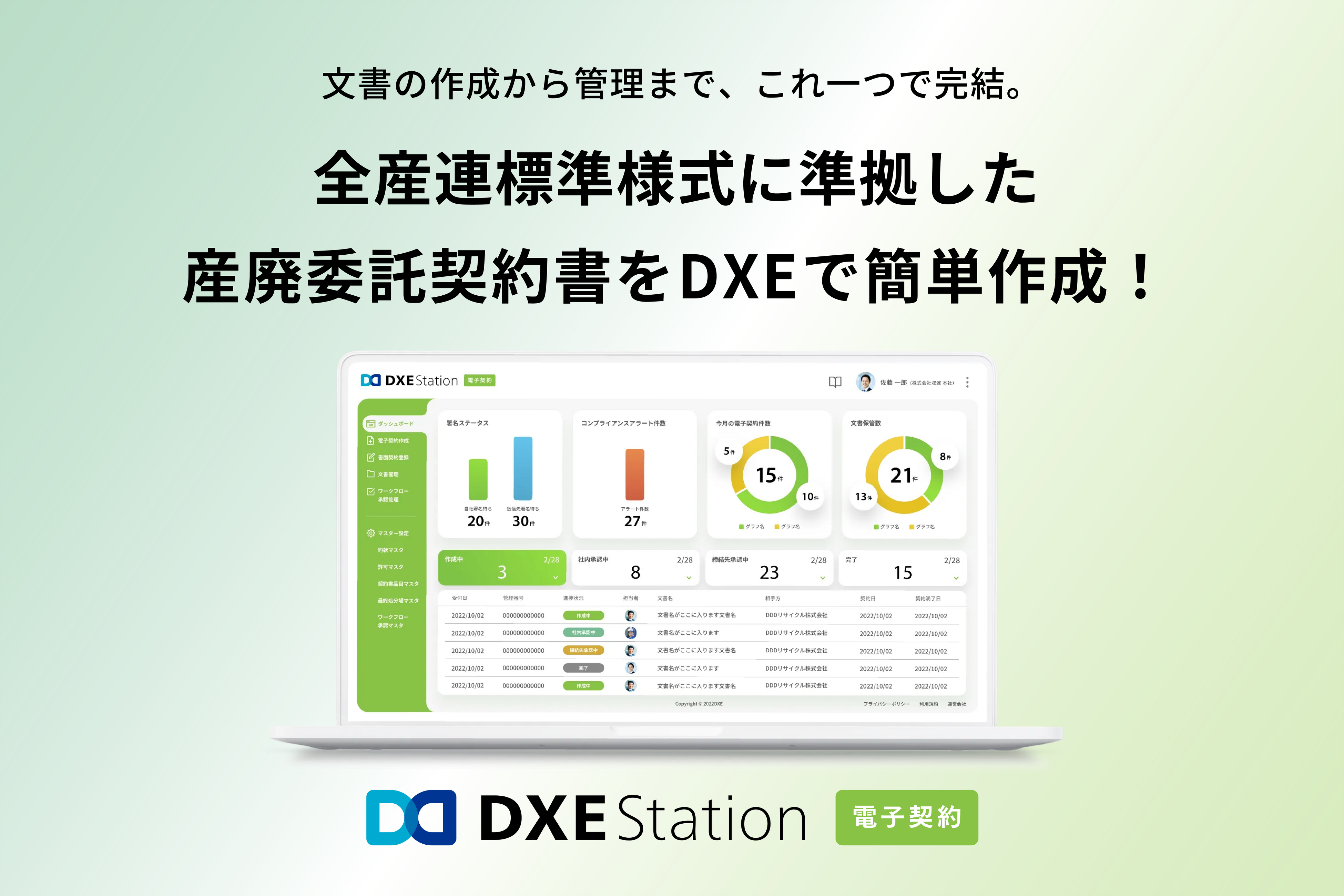 DXE Stationは、産業廃棄物の排出から処理まで、一連の業務プロセスをデジタル管理するシステムです。