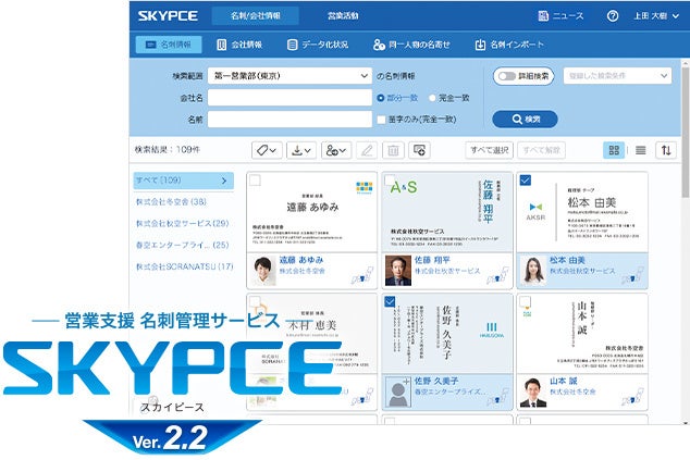 顧客、ビジネスパートナーの開拓など、ビジネスの第一歩となる名刺交換。業務で得た名刺を安全に管理し、活用いただくために開発されたのが「SKYPCE」です。会社・組織全体で集約した名刺情報を「SKYPCE」上で管理し、営業活動などに活用することができます。