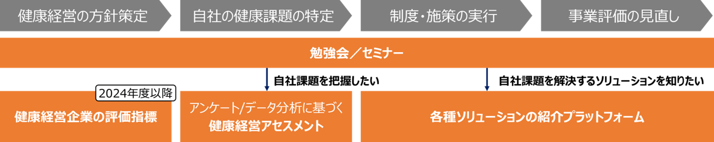 経営層、人事・健保実務担当者向けに、健康経営に関するリテラシー、スキルを高めるための勉強会/セミナーを
