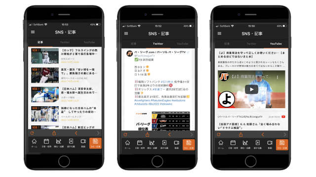 パ・リーグ6球団のニュース、Twitter、YouTube動画をワンストップに網羅!