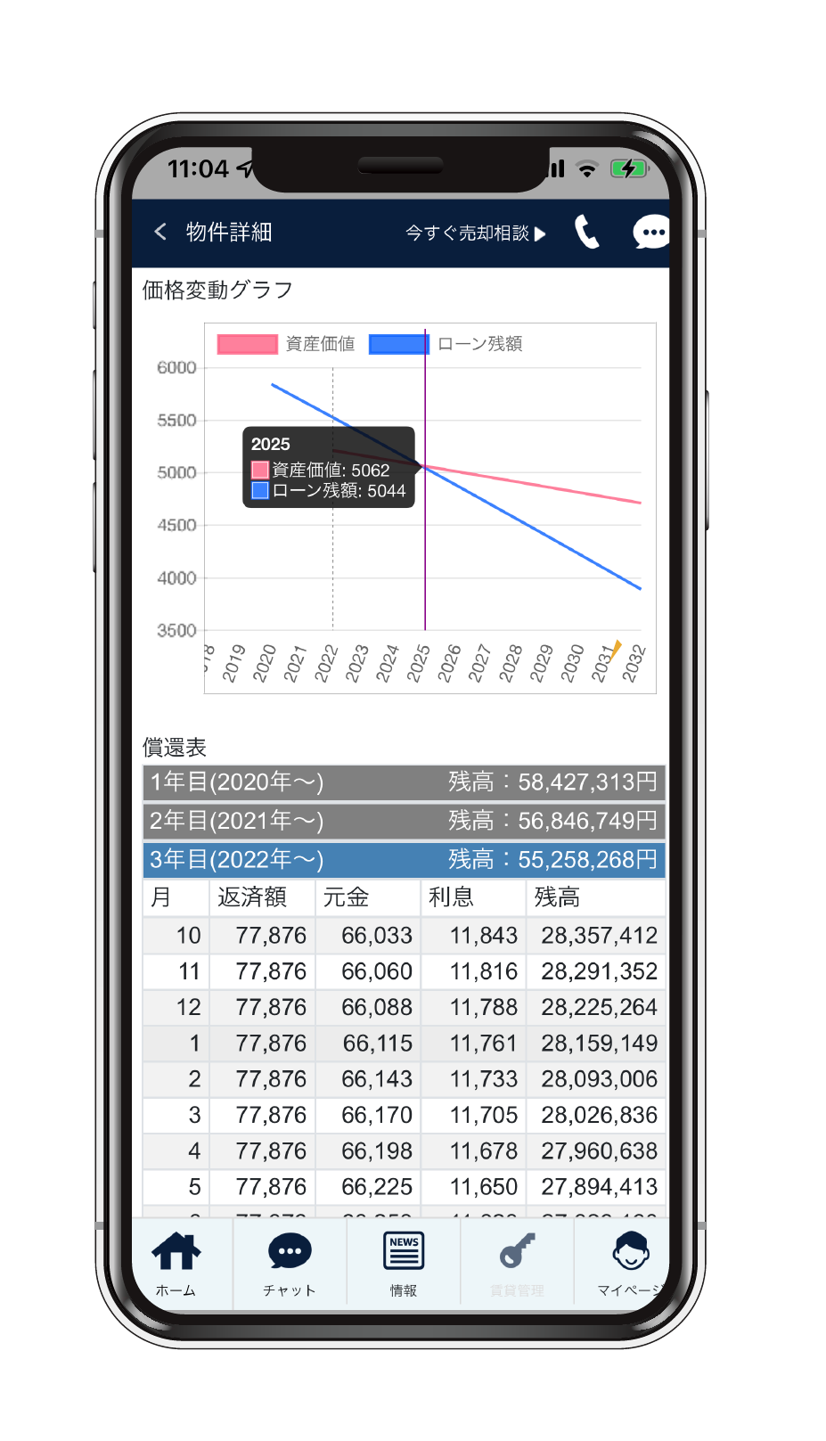 登録物件の詳細データを開くと、自動査定額や売却シュミレーション額をその場で確認出来ます。