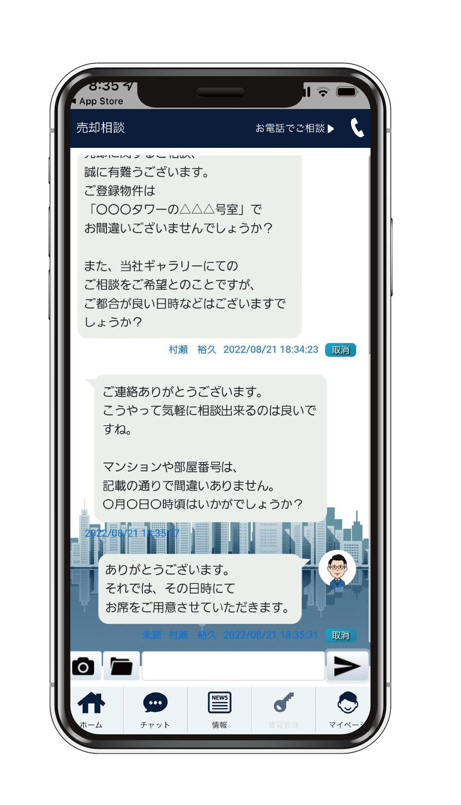 ふとした疑問や専門家に相談したいことがあれば、いつでもチャットを利用して気軽にご相談が可能です。