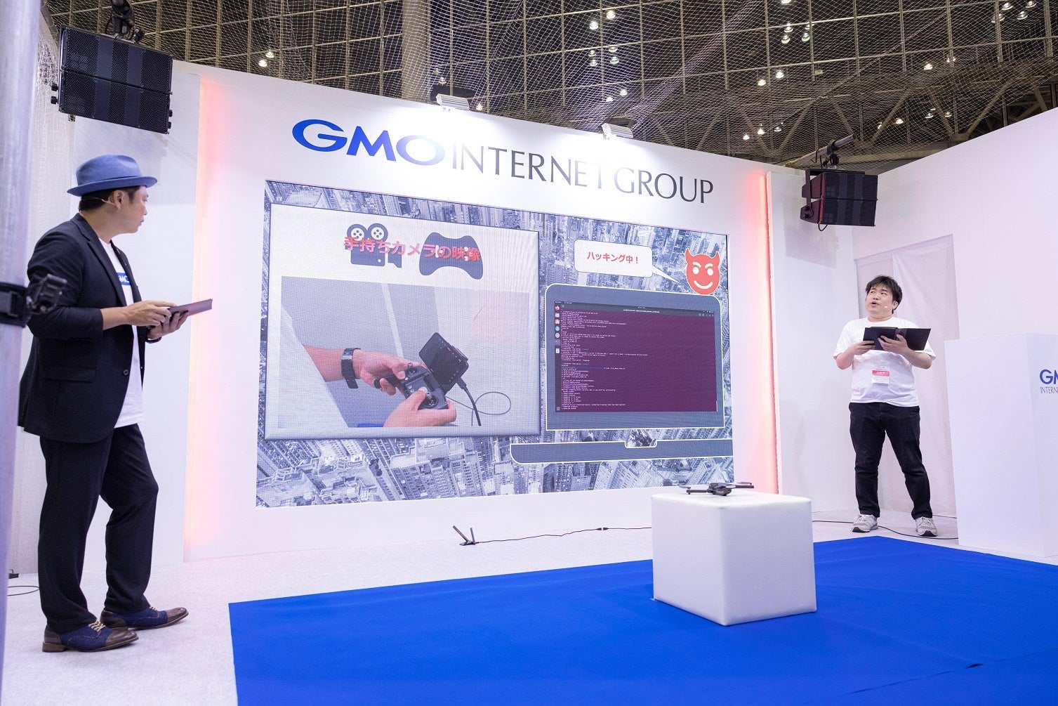 GMOサイバーセキュリティ byイエラエのホワイトハッカーによるハッキングデモンストレーションLIVEを3日間にわたり開催しました。ドローンに対するサイバー攻撃の手口や手法を実演するこのLIVEは、全16回行い、3日間延べ1,500名以上のお客様にご観覧いただきました。