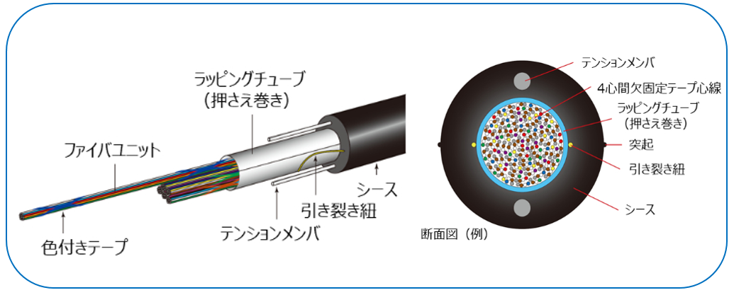 『細径高密度型スロットレス光ファイバケーブル』は、新しいテープ心線(SWR®)によるスロットの無いケーブル構造(WTC®)を採用し、大幅な細径化および軽量化を実現した革新的な光ファイバケーブルです。 これにより、布設および延線が容易になり、許容曲げ半径が小さくなることで施工性が向上しました。加えて、架空布設では自重や風圧荷重の低減により共架柱への負荷軽減や、管路布設では既設管路の有効活用が図れるなどの効果が期待できます。世界的なデータトラフィックの急激な増大を支える製品として、データセンタや高速通信網インフラ整備などの用途に幅広く採用されています。 詳細については、以下のURLをご参照ください。https://www.fujikura.co.jp/products/optical/opticalfibers/02/2056893_11307.html