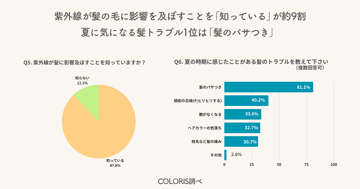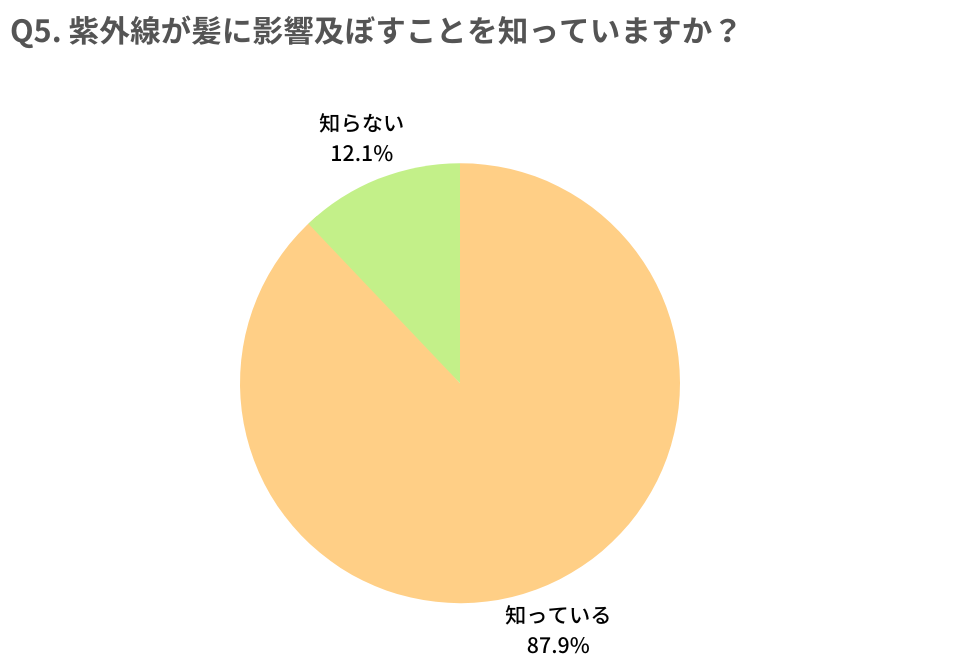- 紫外線が髪の毛に及ぼす影響を、約9割の方が知っている