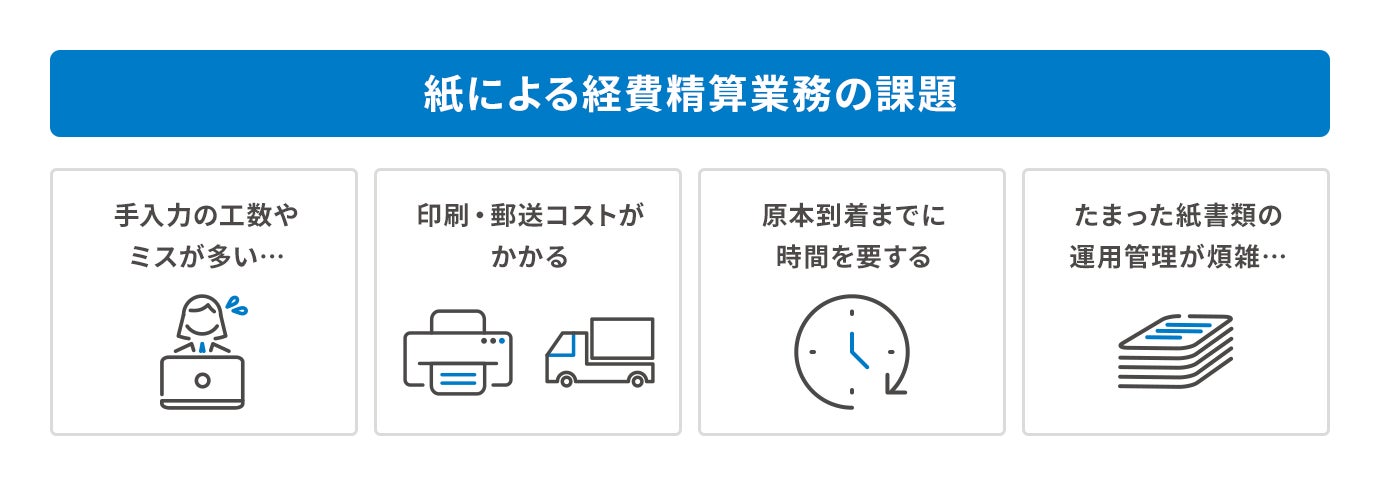 • 全国15拠点から東京本社へ郵送。紙による煩雑な経費精算フローが処理工数を圧迫