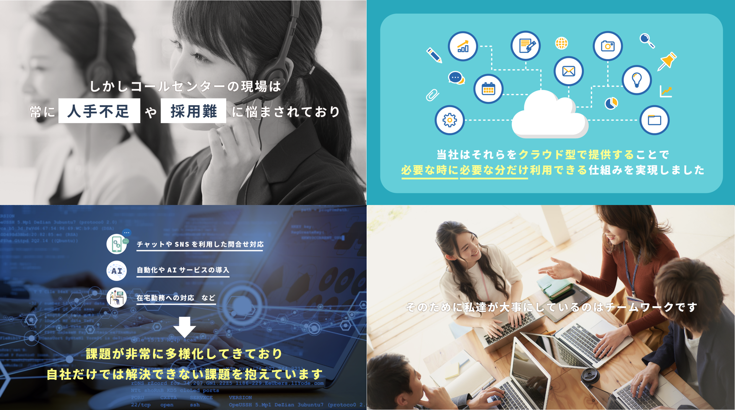 当社は、企業や自治体等で利用されるコールセンターシステムやマーケティングシステムを開発し、月額料金制のクラウド型で提供している会社です。当社にご興味をお持ちいただいたすべての方々を対象として、当社の事業内容や企業理念に関する情報をわかりやすくご理解いただけるように、ホームページに掲載している紹介動画をリニューアルいたしました。