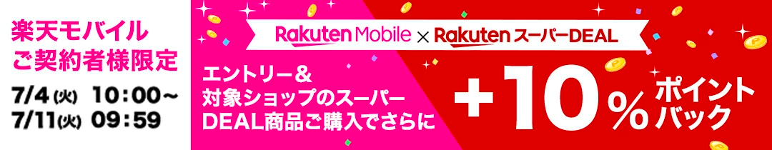 ● DEAL対象商品15%ポイントバック ● 事前エントリーで、さらに10%分のポイントバックが加算(合計25%) ※ 同時開催の「お買い物マラソン」キャンペーンとは併用できません。 |