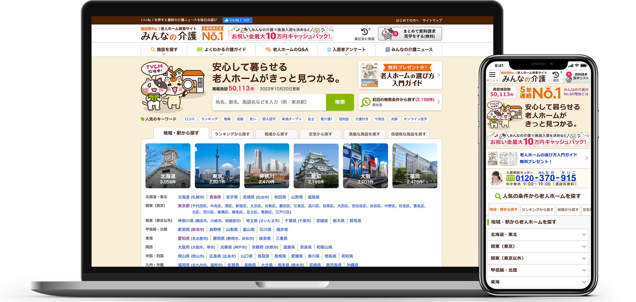 ※主要な老人ホーム検索サイトを対象に掲載施設数の調査を行った結果、みんなの介護がNo.1を獲得しました。