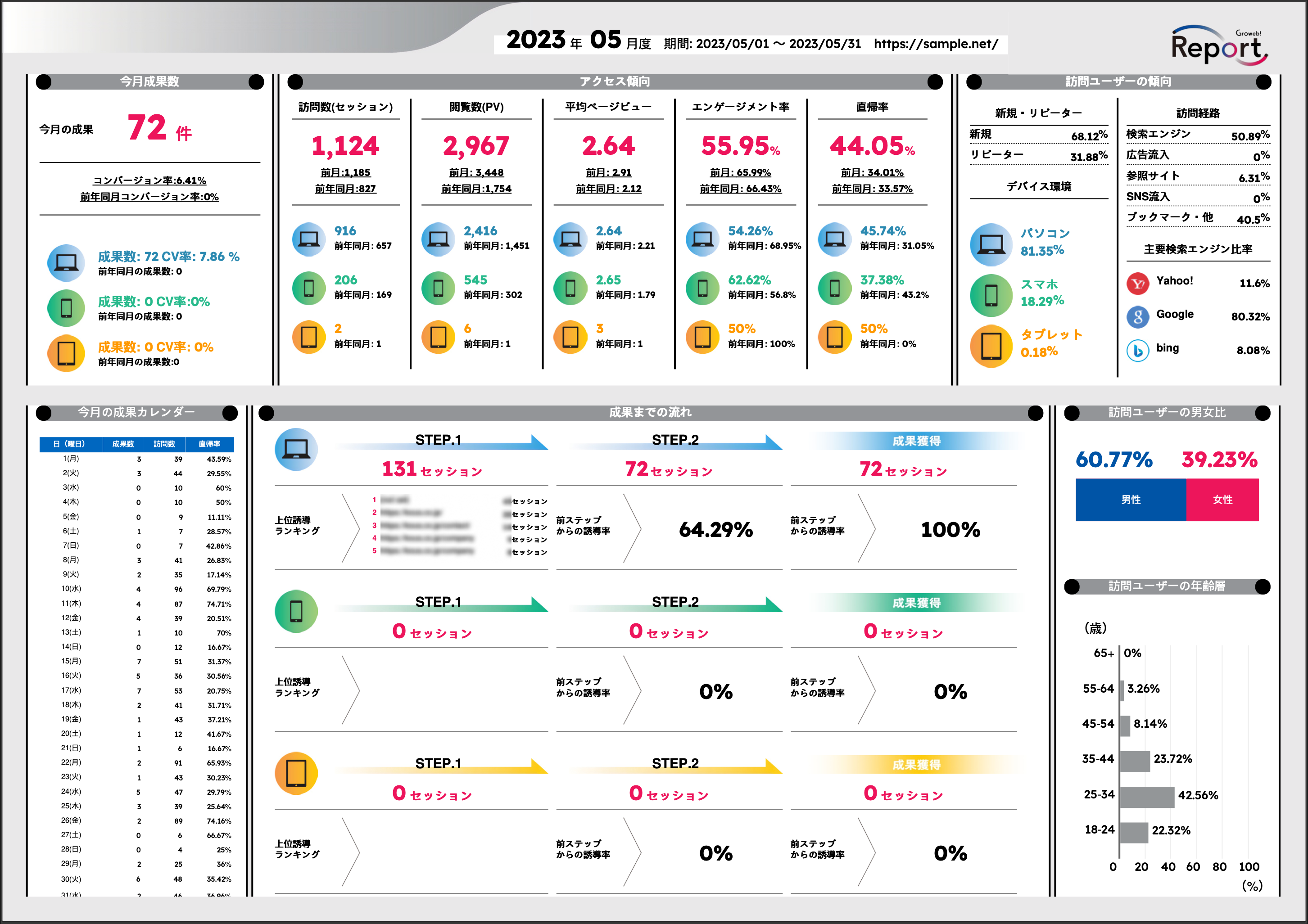 見る・知る・予測するを基本に、Webの知識が深くない方にとっても、わかりやすさを追求したアクセス解析・分析レポートです。