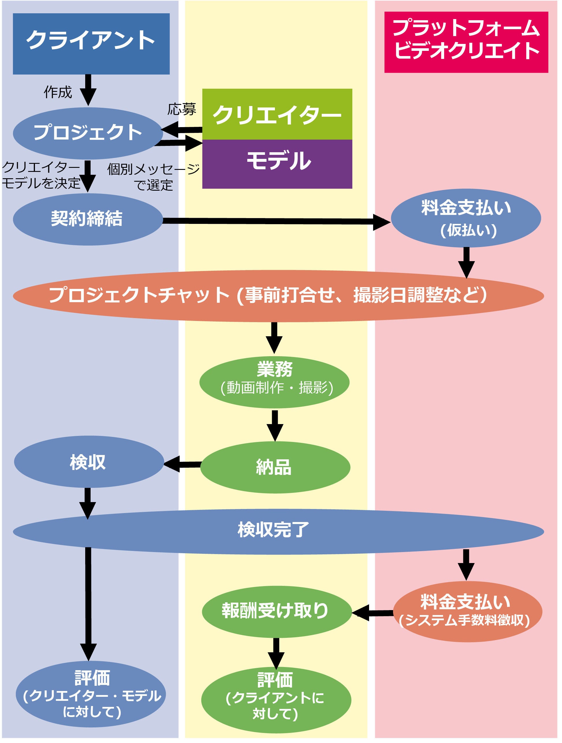 両者のオファー合意のもと、契約となり、納品、支払いまでをビデオクリエイト内で一括管理できます。