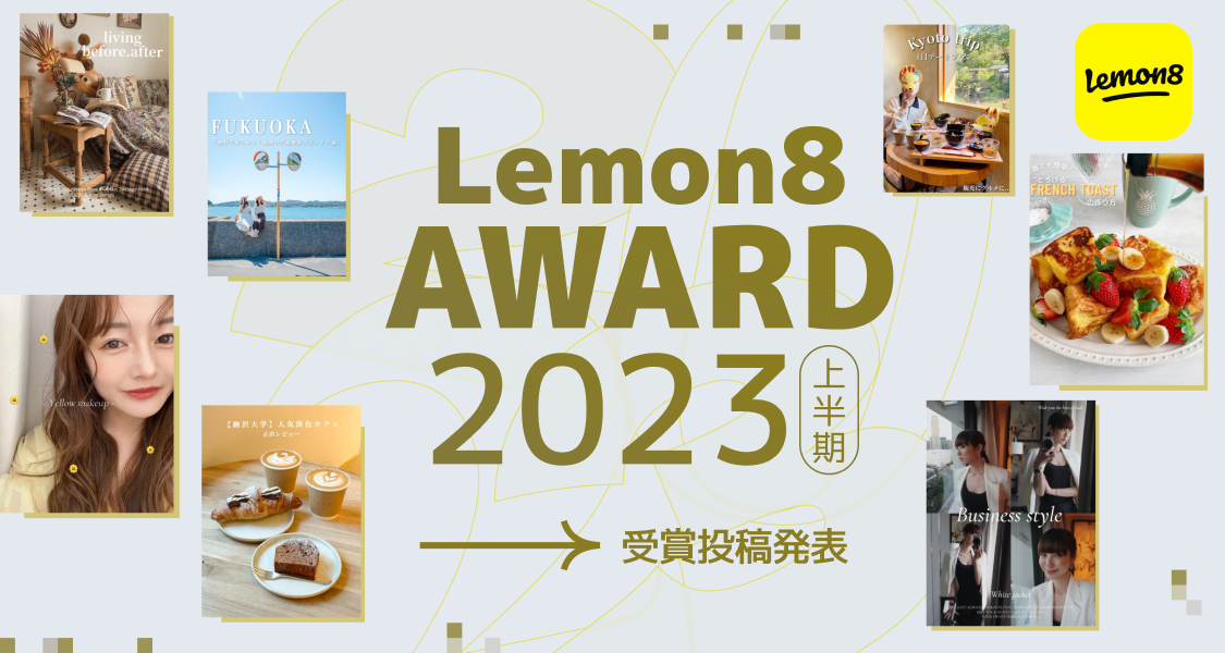 時期:2023年1月1日(日)〜2023年6月15日(木) 受賞対象:カテゴリごとに指定したテーマに沿った内容に、ハッシュタグ「#Lemon8アワード2023上半期」をつけた投稿が対象。
