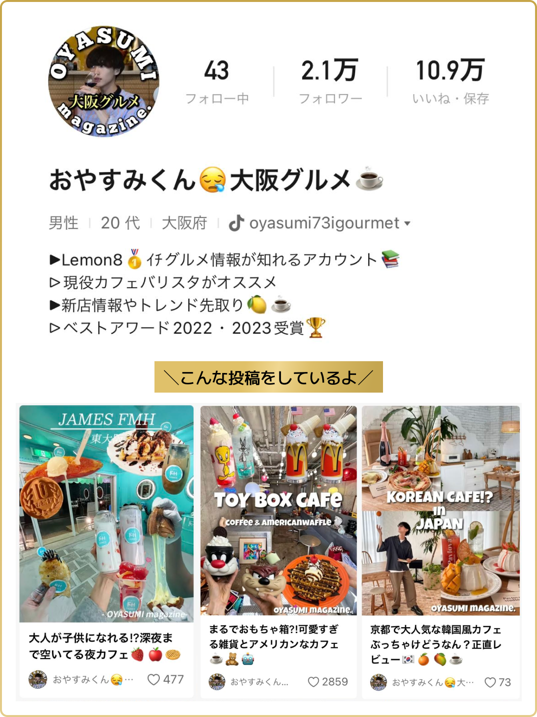 グルメクリエイター「おやすみくん😪大阪グルメ☕️」さん