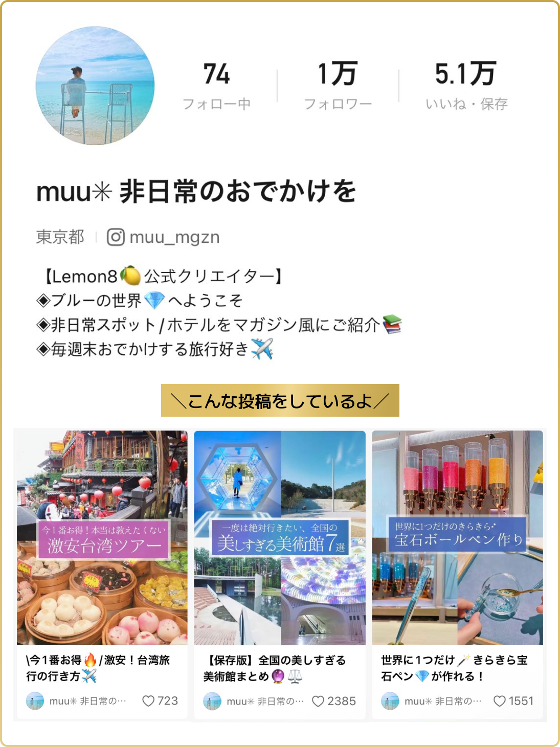 トラベルクリエイター「muu✳︎ 非日常のおでかけを」さん