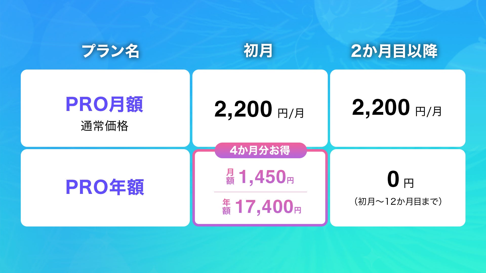 *年額サブスクリプションプランは、17,400円(税込)の一括払いです。