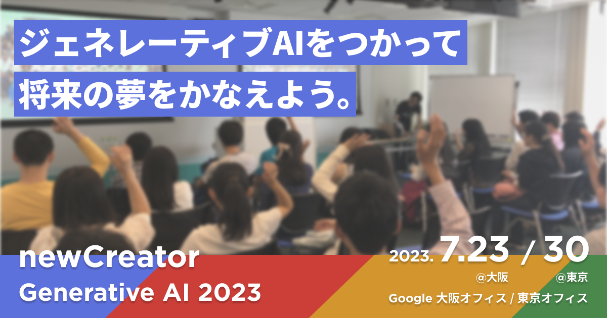 特定非営利活動法人ニュークリエイター・オルグは、2023年7月23日(大阪開催)・7月30日(東京開催)に、高校生が将来の夢についてプロンプトエンジニアリングを使って考えるワークショップ型イベント「newCreator Generative AI 2023」を開催します。