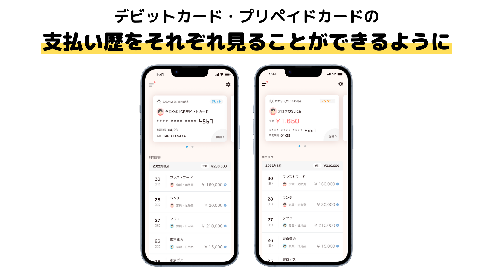 今回の対応により、クレジットカードだけでなく、デビットカードやプリペイドカードの支払い歴も一元管理することができるようになりました。また、カードごとに分けて支払い歴を確認することができるため、「誰の」「どの」カードか、という情報も簡単に確認することができます。