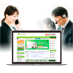 プリントネットには自社コールセンターが設備されています。営業時間内ならすぐにつながるので、ご注文やデータ、お支払に関することなど、お気軽にお電話ください。