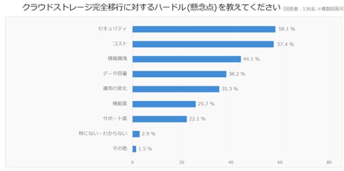 クラウドストレージに完全移行する際の懸念点にも「セキュリティ」と「コスト」が上位で懸念点をクリアできることが選定の重要なポイントである