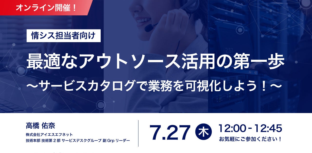 7/27_【情シス担当者向け】最適なアウトソース活用の第一歩 ~サービスカタログで業務を可視化しよう!~ アウトソーシングという手もありますが、まずは情シス業務の整理整頓から始めてみませんか?