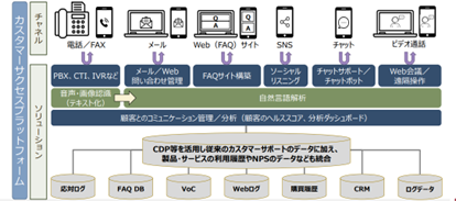 コンタクトセンターでは、オムニチャネル(複数のチャネルを統合して管理可能)対応コンタクトセンターソリューションとしてUCaaS(Unified Communication as a Service)の検討・導⼊が進められ、近年はビデオ通話を利⽤した遠隔サポートの導入が広がっています。今後、受動的な問い合わせ対応から、顧客の製品およびサービスの利⽤状況の分析結果に基づく能動的なサービスを提供するカスタマーサクセスセンターへの変⾰が求められています。