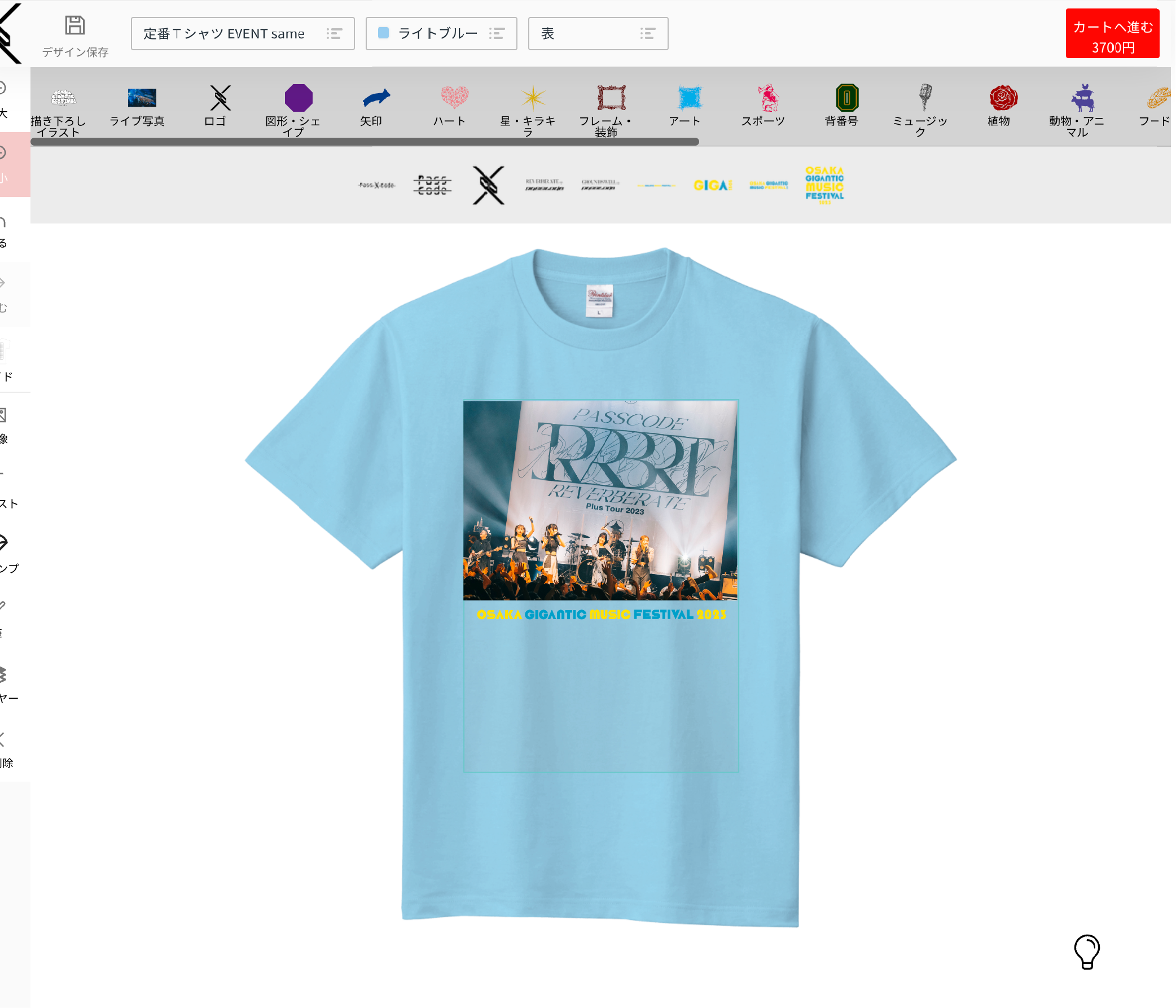 GIGANTIC MUSIC FESTIVAL 2023出演のPassCodeとのコラボレーションがスタートし、PassCodeの魅力が詰まったオリジナルデザインTシャツが手に入ります!ライブの迫力ある写真、アーティストとジャイガのロゴ、可愛らしいベリグマの画像、さらにはPassCode本人の描き下ろしデザインをTシャツに自由に配置することができます。あなたもこの特別なコラボでPassCodeを着用してみませんか?この限定Tシャツはイベント期間中に限定で入手可能です。世界に1枚のTシャツを着てGIGANTIC MUSIC FESTIVAL 2023でPassCodeとの特別な瞬間を迎えましょう!