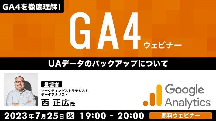 今回のウェビナーでは、各企業のGA4への移行を支援するアナリストである株式会社月曜日のトラの西正広さんにご登壇いただき、UAデータの何をバックアップすべきか、また、損失や問題を防ぐための手法など、UAデータのバックアップについてわかりやすく解説していただきます。ご興味をお持ちの方はどなたでもお気軽にご参加ください。