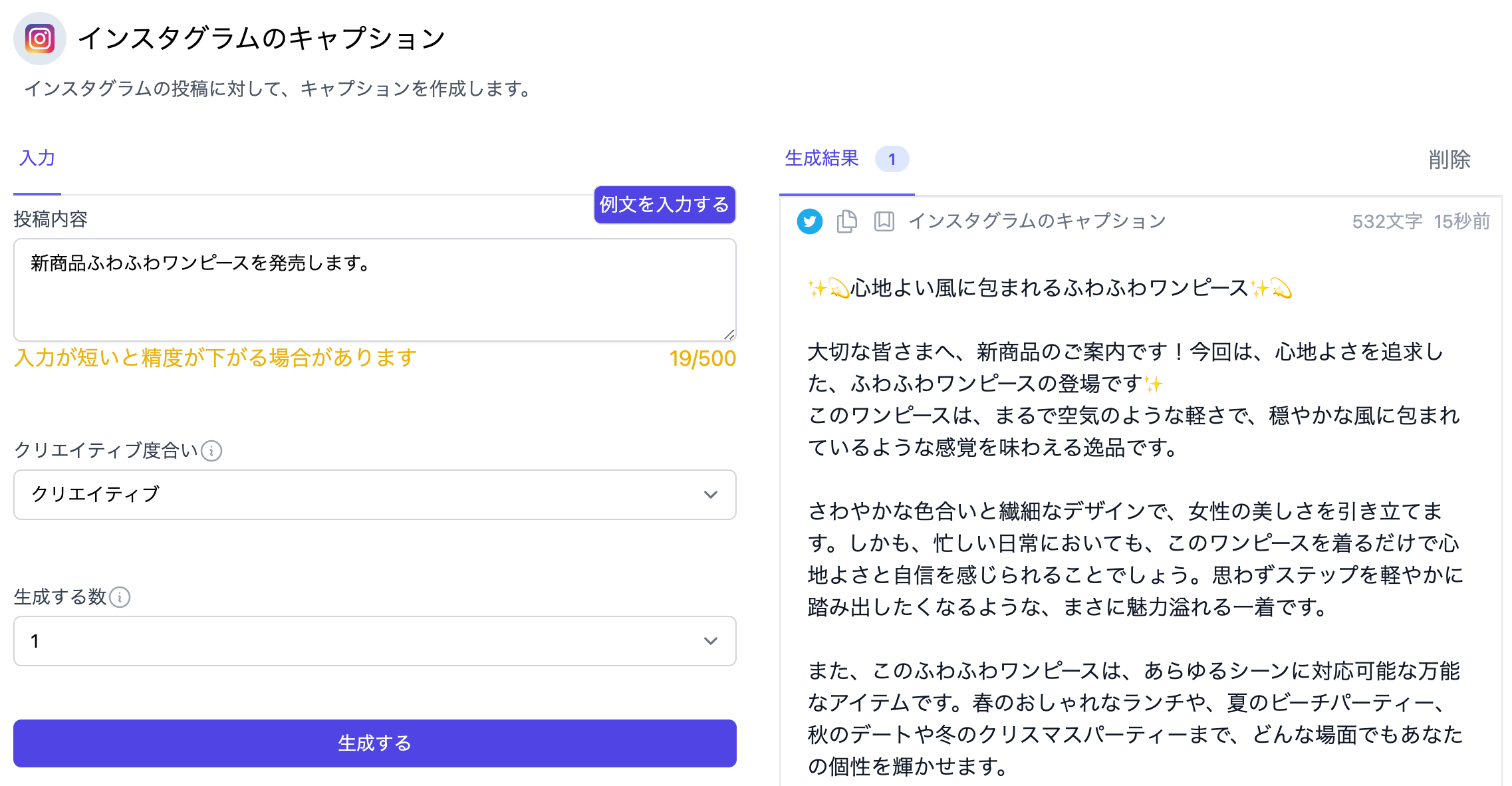 目を引くキャプションを「わずか10秒」で作成することが可能です。