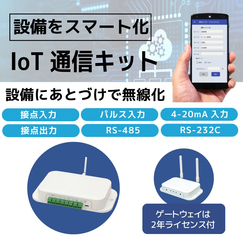 工場内のネットワーク不要で設備をIoT化。RS-485、無電圧接点、4-20mAなどのインターフェース無線化で、温度調節器の遠隔操作やタンク・配管の状態を遠隔モニタリングすることが可能に。警報通知が受信可能なサンプルアプリほか、お客様のプログラム開発に必要な仕様書を提供も可能です。