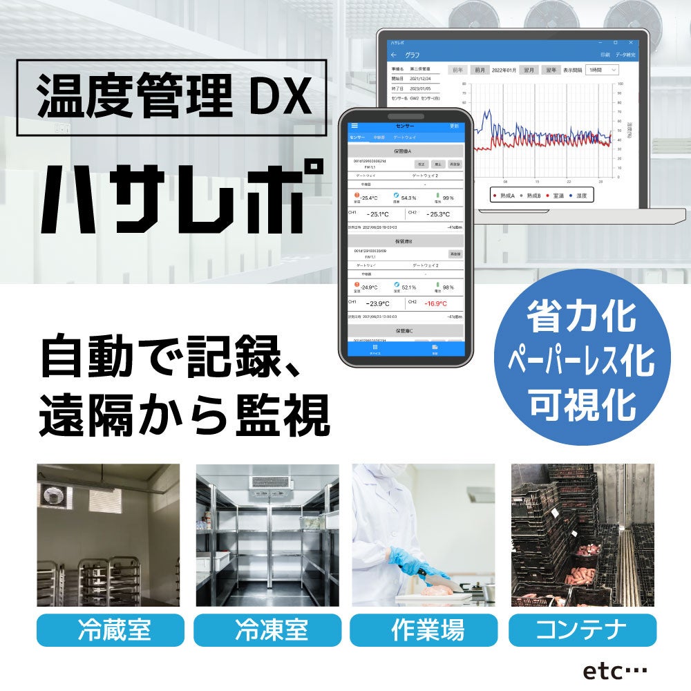 ハサレポは温度や水温を常時計測、PCやスマホからいつでも確認できるクラウドサービスです。プレハブ冷蔵庫、コンテナ冷凍庫、作業場、チラーなどにあとづけOK。温度管理業務を効率化します。HACCPで必要とされる温度の記録を自動化、温度や設備の異常発生時には通知が届くので安心です。