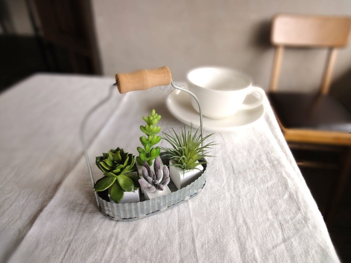 アロマストーンにもなる花器に植えられた多肉植物のオブジェ