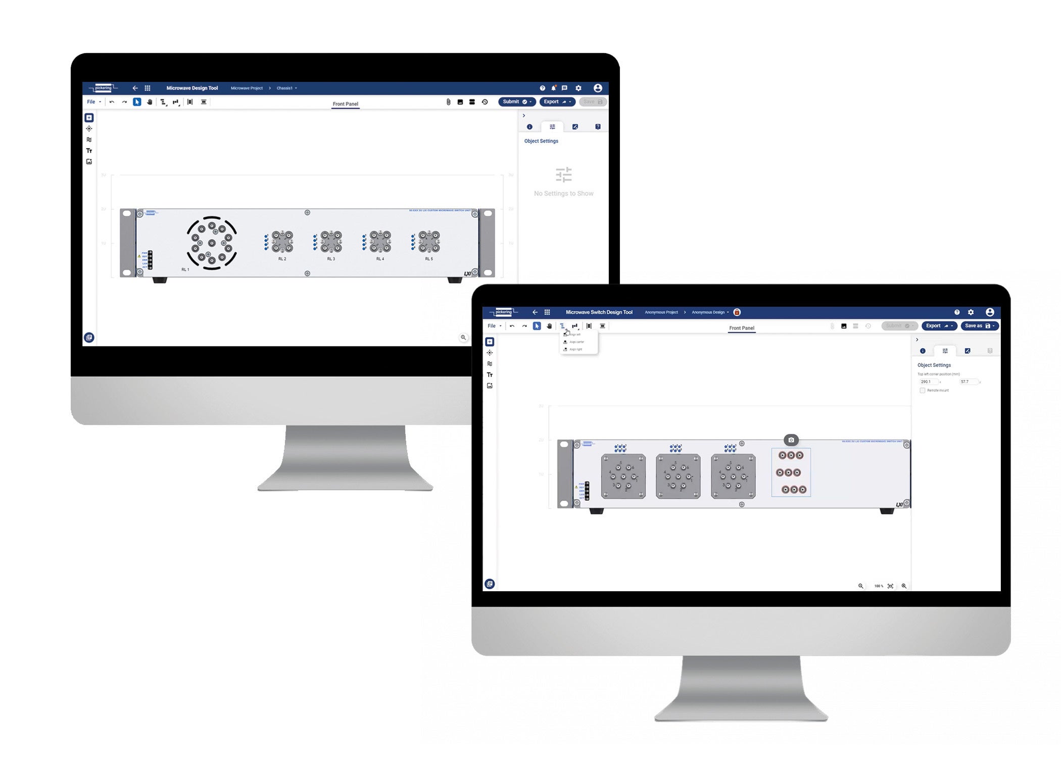 インタラクティブなオンラインツールを使用すると、最大110GHzの帯域幅、50Ωまたは75Ωのインピーダンス、各種コネクタを備えた高性能なマイクロ波LXIリレーを、個々のマイクロ波スイッチング素子の位置や関連するラベル要件も含め、指定して構成することができます。LXIマイクロ波スイッチ・プラットフォームの設計から完全なシステム見積書と固有部品番号を発行して、ピカリング インターフェースに注文でき、構築されたカスタムシステムを納品してもらうことも可能です。