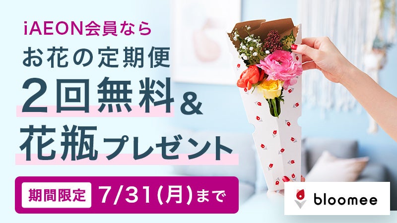 内 容:「iAEON」の「注目のイベント」経由で「bloomee」リッチ・レギュラープランを新規お申込みの方を対象に、2回分無料+花瓶を進呈します。