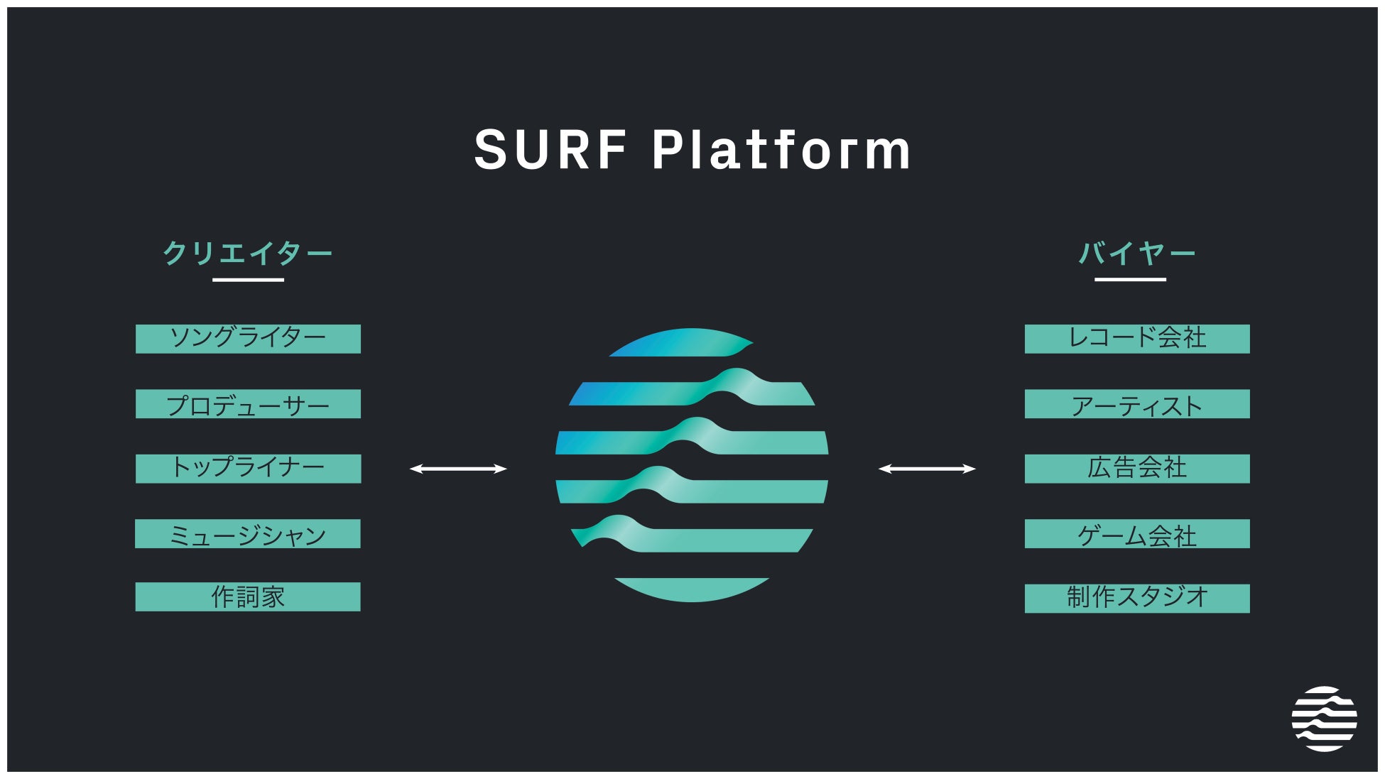 SURF Musicは、日本のソングライター兼プロデューサーである小堀ケネスをCEOとしたスタートアップで、クリエイターが自身の未発表曲を、世界中のエンターテインメント業界のバイヤーに向けて販売できるマーケットプレイスとデジタルツールを提供する企業です。テクノロジーを介して、透明性、発見、繋がり、コラボレーションの機会を創出し、最適な楽曲と最適なマーケットをマッチングすることで、音楽業界の再活性化を目指します。