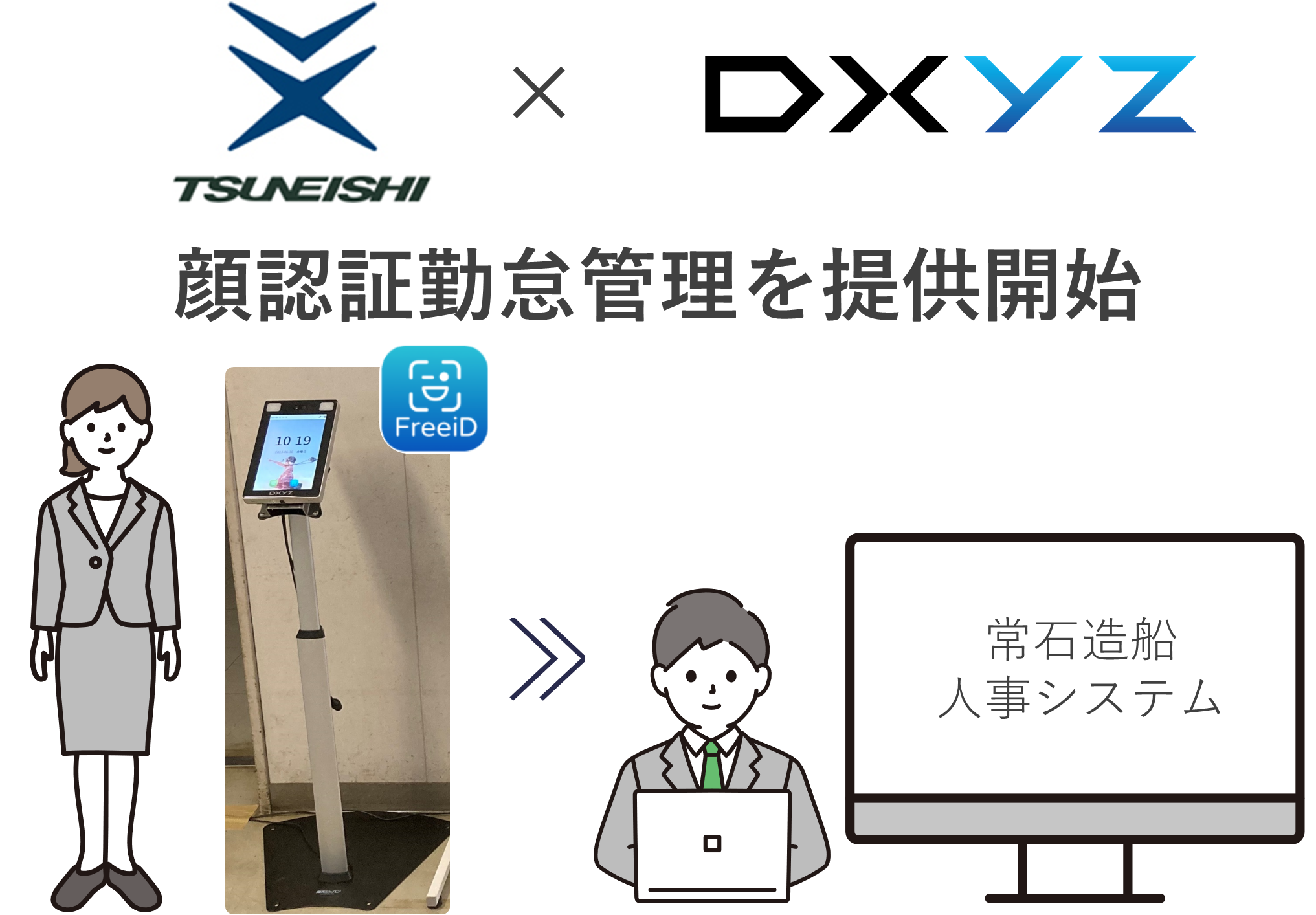 DXYZでは、2022年10月より常石造船の東京事務所にFreeiDオフィスサービスを提供しております。従業員は同ビルのエントランスを顔認証で入場でき、グループ会社の従業員も指定時間に限定して、顔認証で入場できるようになっています。
