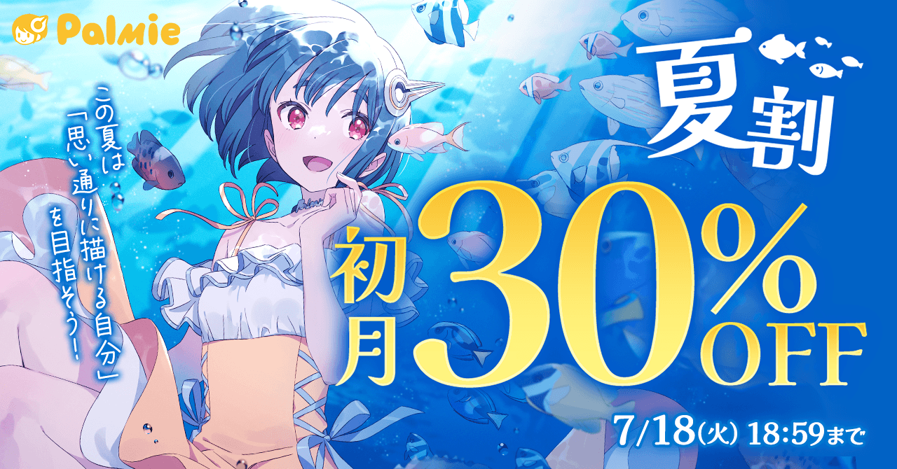 株式会社パルミー(所在地:東京都港区、代表取締役:大野英紀、以下パルミー)は、本日2023年7月6日(木)12時00分〜2023年7月18日(火)18時59分までの期間、受講料が初月30%OFFになる「夏割」を開催いたします。