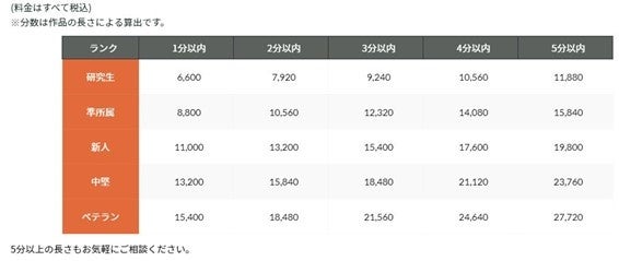 声優の技術、経験に応じた金額設定を作品の長さ1分からご提案致します。