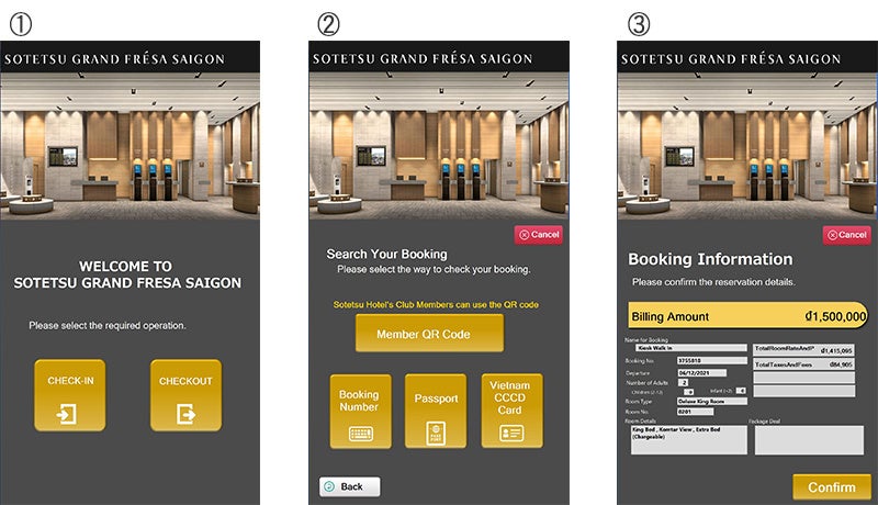 ② 会員QRコード、予約番号、パスポート、ベトナムCCCDカード、いずれかで予約情報を確認します。