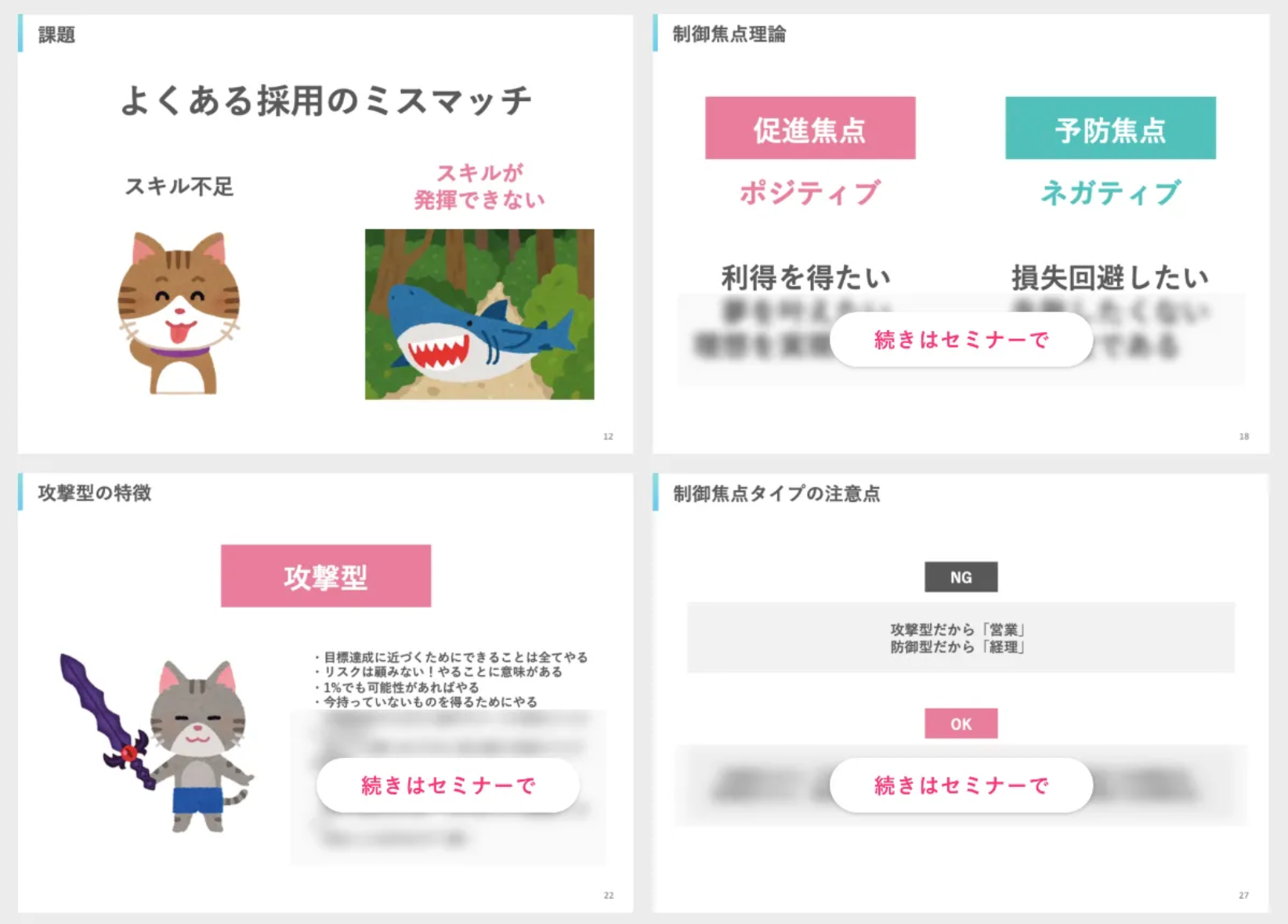 弊社では、制御焦点理論というモチベーションタイプを活用した「科学的な採用手法」をオンラインセミナーにて解説しております。